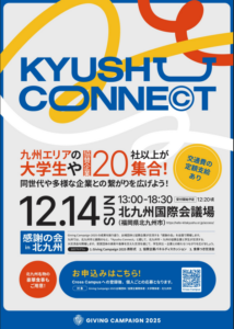An exchange event for students in Kitakyushu and students from all over Japan who have left their hometown to connect with local companies in Kyushu, ".Kyushu Connect 2025The "1.2It was held for the first time on Sunday, March 14 at the Kitakyushu International Conference Center.